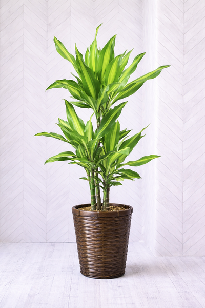 幸福の木よりもやや緑が強いストライプの葉が特徴的で、シャープに真っすぐと伸びた幹は飾られた場所のインテリアとしてもスタイリッシュな印象を放ちます。あまり幅を取ることがなく、コンパクトに育ちますので、狭いスペースに置くのも良いでしょう。