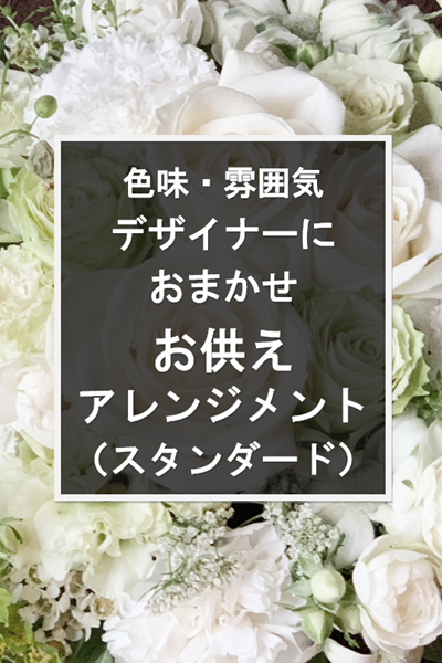 故人への感謝と祈りを込めた、優雅な雰囲気のアレンジメントです。花材は季節の美しさを引き立てるものを中心にセレクトし、デザイナーのおまかせでお作りします。