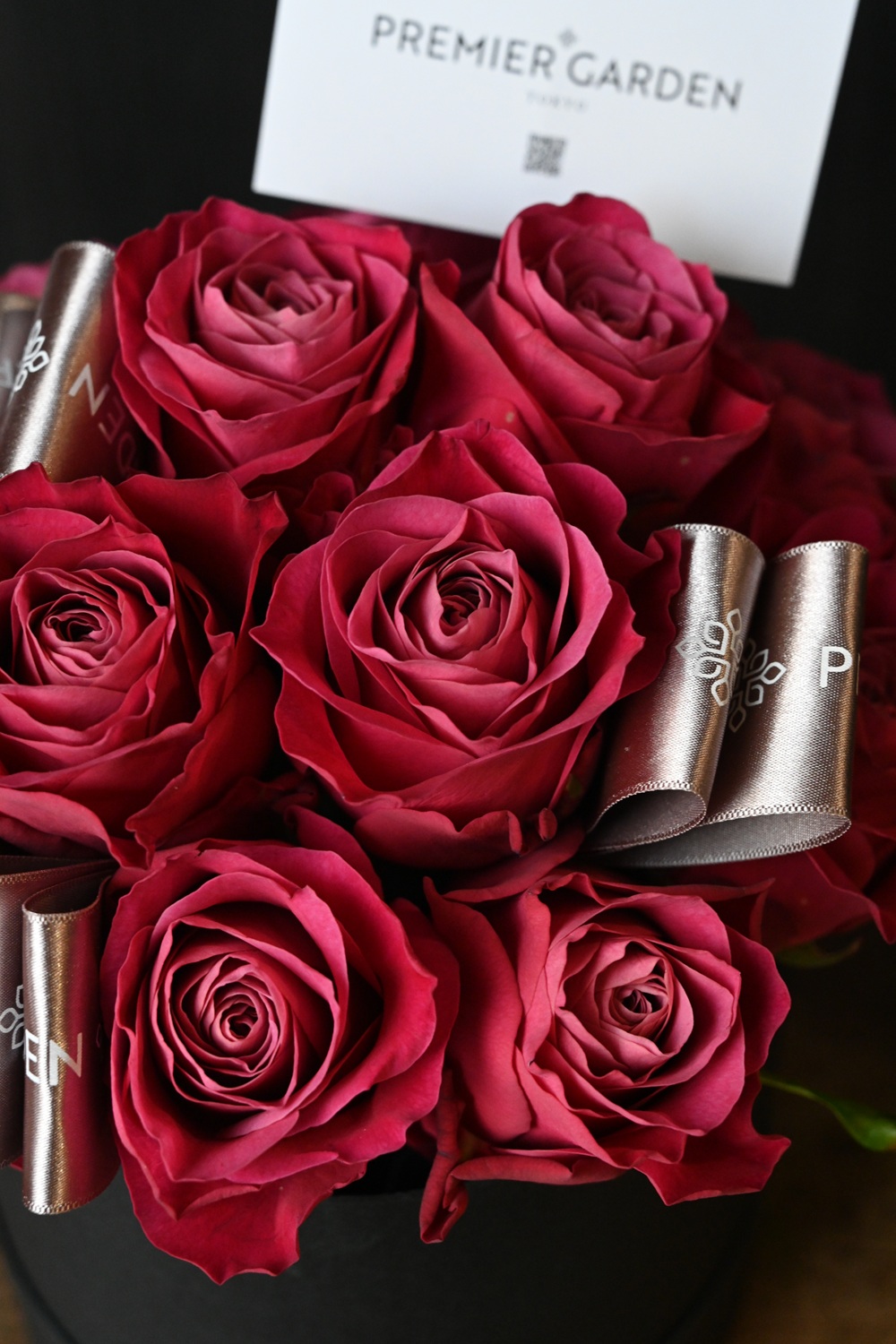 柔らかな曲線を描くブラックボックスが、ピンクの重なりをより鮮やかに引き立てます。あえて甘さを抑えたスタイリングに仕上げることで、凛とした美しさを追求しました。