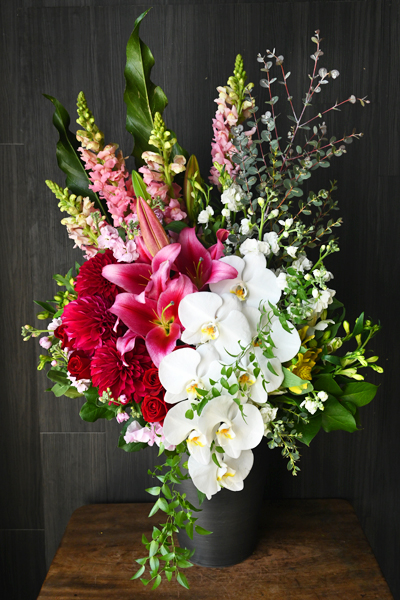 特別な瞬間を鮮やかに彩る、存在感と気品を兼ね備えたアレンジメントです。