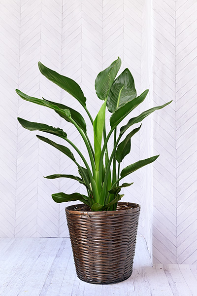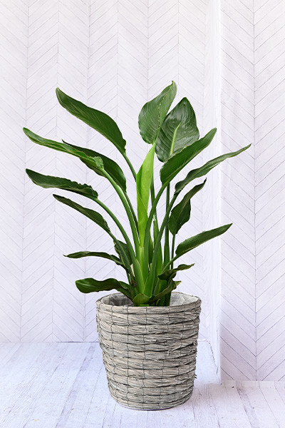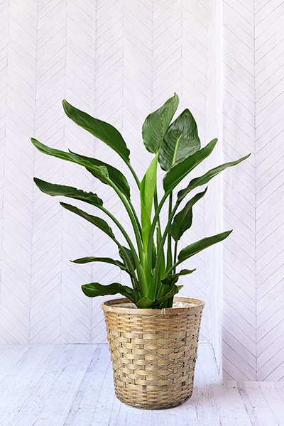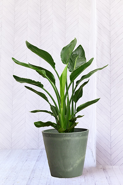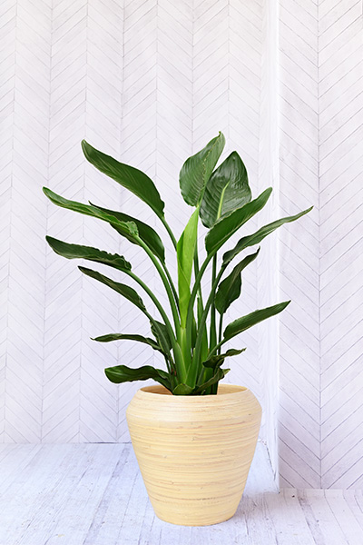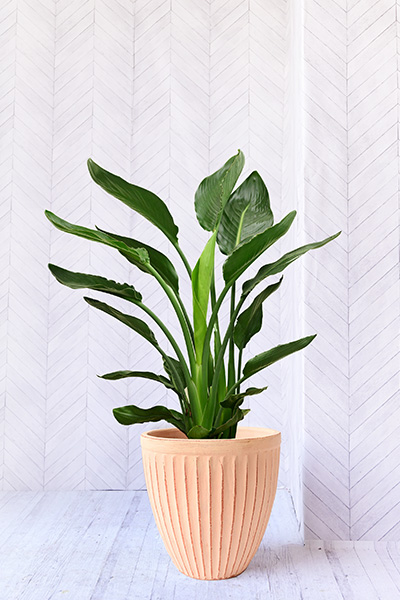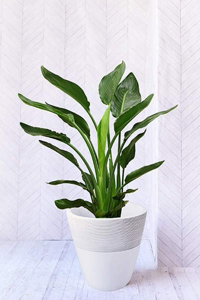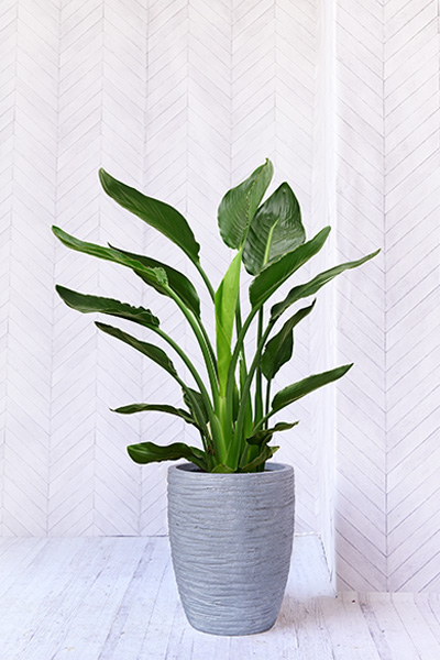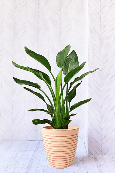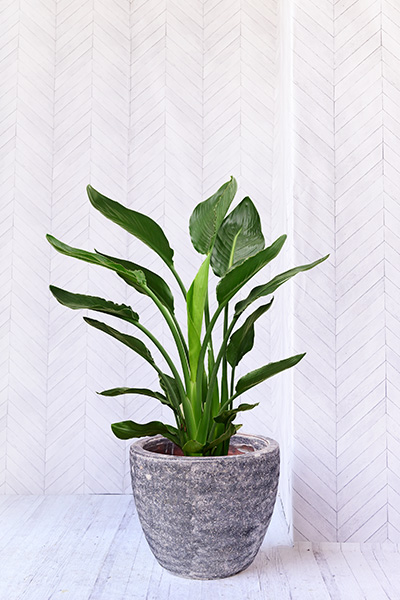 別名を「バード・オブ・パラダイス(天国の鳥)」とも呼ばれるストレリチア レギネは、グリーンで大きな丸みを帯びた長い葉が上へ伸び、南国調のトロピカルな雰囲気を楽しめる他、大きく鮮やかな花も楽しむことのできる人気の観葉植物です。