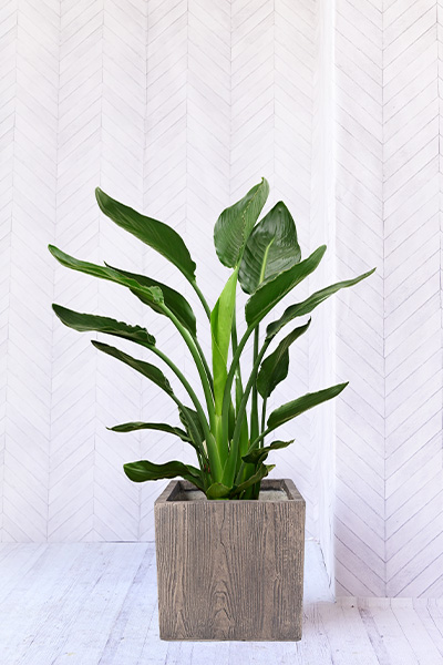 ストレリチア レギネの南国調の雰囲気は、インテリアグリーンとしてとても個性的で存在感があり、フロアの中に清涼感を与えてくれます。是非、ストレリチ アレギネを飾られてみてはいかがでしょうか。