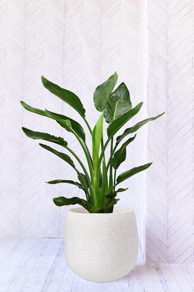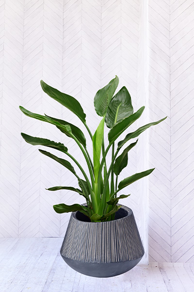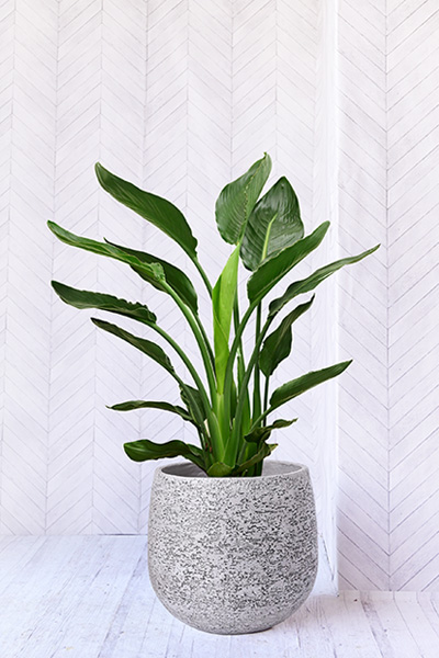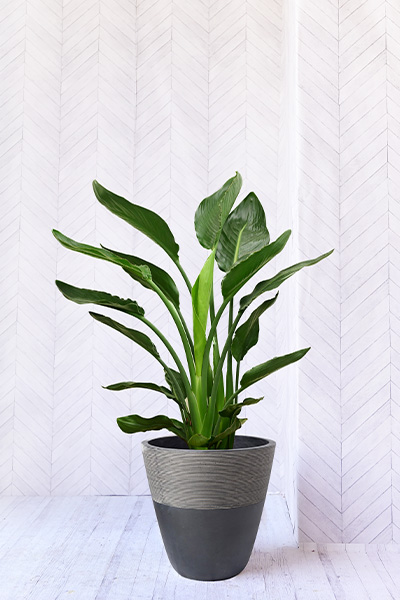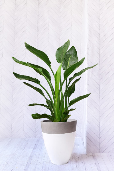 別名を「バード・オブ・パラダイス(天国の鳥)」とも呼ばれるストレリチア レギネは、グリーンで大きな丸みを帯びた長い葉が上へ伸び、南国調のトロピカルな雰囲気を楽しめる他、大きく鮮やかな花も楽しむことのできる人気の観葉植物です。