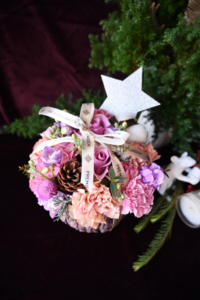 ピンクの濃淡が華やかで温かみのある豪華フラワーアレンジメント